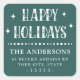 Pine green, winter holiday return address labels featuring the text "Happy Holidays" in a festive font flanked by retro stars. Below is a dot divider and your return address. White text on a pine green background. All colours are customisable. Move and resize elements and text with the design tool.