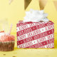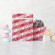 Wrapping paper featuring the text "Happy Holidays" in a festive font on white and red stripes.