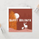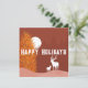 Happy Holidays typography on holiday themed background in brown that includes Christmas Fir trees, moon and the reindeers.