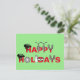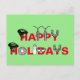 Simple red chunky text reads "Happy Holidays". I've added cycling icons (helmets, bikes, chains, gears, water bottle) to replace letters.