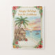 Piece together paradise this holiday season! This 'Happy Holidays from the Caribbean' puzzle combines festive cheer with tropical beauty. Featuring a sunset beach scene, a decorated hut with wreaths and bows, and a palm tree strung with colorful lights, it’s a joyful way to celebrate the season. Surrounded by hibiscus flowers, pineapples, and palm leaves, the design offers a vibrant twist on traditional holiday imagery.