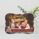 A modern photo Christmas card design with your family photo filling the card face. Fun modern art Christmas tree decor with dark red text band for your words.
