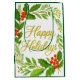 Celebrate the season in style with this 'Happy Holidays' gift bag! Featuring a festive wreath with holly, berries, and elegant gold script, it’s perfect for presenting Christmas gifts, party favors, or holiday surprises.