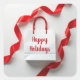 Happy Holidays Gift Bag With Red Ribbons Square Sticker