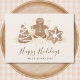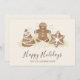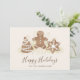 This holiday card features watercolor cookies, gold festive greenery, and stylish script typography on a cream background.