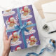 Christmas gingerbread man with Santa Claus cap in white milk splash on purple background with Happy Holidays text.