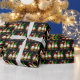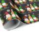 Festive black, red and green hand drawn cartoon gnomes and snowflakes Happy Holidays Christmas gift wrap.