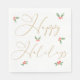 Happy Holidays Gold Calligraphy with Holly Sprigs Napkin