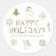 Happy Holidays gold white custom name gift favour Classic Round Sticker