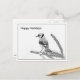 This is a happy holiday's postcard featuring the sketch of a bluejay on a pine tree with snow in the winter. This image was taken by Debbie Quick of Debs Creative Images. To see more photography by Debbie, check out her website at: www.debscreativeimages.com