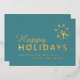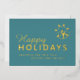 Happy holidays logo business turquoise gold foil holiday card