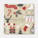 Seamless Happy Holidays design Christmas symbols - snowflakes, deer, calendar, Christmas tree, Christmas gift, skate, hearts, Christmas ornament, Christmas stocking, ribbon - decoration on grey background