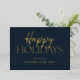 Happy Holidays Modern Blue Gold Script Business Foil Holiday Card