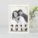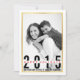 Happy Holidays modern and elegant Christmas holiday card that features your photo in a golden border and the text “Happy holidays” in red and “2015” in black.