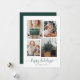 This simple yet ultra modern Christmas card features four of your favourite personal photos in a unique, layered look photo grid. The forest green and white card design says "happy holidays" in elegant, trendy handwritten script typography, and has a spot for your name in a coordinating sans serif font.
