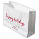 Happy Holidays | Modern Minimalist Red Xmas Script Large Gift Bag