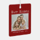 Modern Holiday gift ornaments with an elegant style. These amazing holiday ornaments offer a stylish typography greeting that reads, "Happy Holidays, Your Family Name and the Year". The custom design features your favourite photo or family picture on the front, highlighted by a unique modern gradient frame in white on a regal red background. The back of the ornament features a text space for your custom message. Makes a fantastic keepsake gift.
