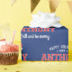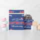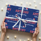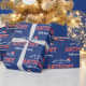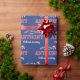 Get ready for Christmas with custom name wrapping paper! This festive design features sports jersey inspired typography, with a retro block font, a Santa hat, and stars. Personalise the template with the recipient's name, the year, plus you can customise the phrase 'Chill and be merry' with your own holiday message. This simple, stylish design is perfect for kids, teens, family, and friends! A seamless pattern gift wrap, available with a glossy or matte finish. Printed colours: dark blue, navy, red and white.