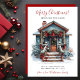 This rustic watercolor Happy Holidays new home for the holidays announcement card with a festively decorated wood front door with pine boughs and trees, a wreath, and red holiday bows would be perfect to send to your friends and family now that you have moved to a new home. The sentiment is customisable. Get enough so that everyone you know and love has your new address. They'll be so excited about your big move!