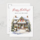 This watercolor new home for the holidays announcement postcard with "Happy Holidays - From Our New Home" on the front and "Wishing you peace and joy this holiday season!" on the back in modern yet traditional fonts would be perfect to send to your friends and family since you have moved to a new home this year. The cottage could be anywhere and the festive pine boughs, garlands, and red bows add that extra touch of Christmas spirit. To customise and make these your own select "Personalise this template" and type in your information. It's so easy!