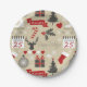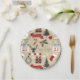 Seamless Happy Holidays design Christmas symbols - snowflakes, deer, calendar, Christmas tree, Christmas gift, skate, hearts, Christmas ornament, Christmas stocking, ribbon - decoration on grey background