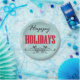 Vintage style Happy Holidays design with snowflakes and floral decoration on blue background