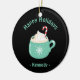 This adorable holiday ornament features a pastel blue cup filled with cosy hot chocolate, topped with a festive candy cane. The cheerful phrase “Happy Holidays” adds seasonal charm, while the option to personalise with a name makes it a thoughtful and unique gift. With its soft colours and sweet details, this design is perfect for winter celebrations, stocking stuffers, or spreading warm holiday vibes.