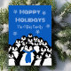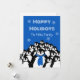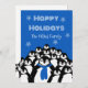 Happy Holidays Penguin Personalised Blue Holiday Card