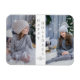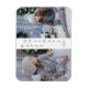 Happy holidays Christmas magnet with creatively outlined font in trendy shades of neutral grey. Photo template licensed via Pixabay under CC0 and must be replaced with your own photos.