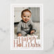 A charming and festive holiday design featuring a full-photo front framed by clean white borders and elevated with shimmering foil accents. The bold “Happy Holidays” greeting sparkles with metallic detail, including a small ornament motif that adds a warm seasonal touch. The foil color can be customized in any of the three available options, allowing you to match your preferred holiday palette. Crisp, modern typography pairs beautifully with the metallic finish, creating a polished look perfect for baby portraits, family photos, or holiday snapshots. The back includes two additional photo spaces and a personalized holiday message, offering a stylish and heartfelt way to share your greetings.