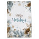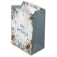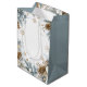 Simple and elegant Christmas gift bag featuring a beautiful watercolor abstract of pine trees in muted sage grey and brown and christmas decoration. "Happy Holidays" in a stylish script customise it with your text.