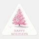 Happy Holidays Pink Christmas Tree Modern Triangle Sticker