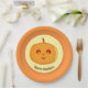Happy Holidays pumpkin face paper plate. Cute happy pumpkin face on light yellow background. Text can be personalised for Halloween party, for Thanksgiving or any other occasion. Enjoy!