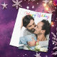 Elegant Happy Holidays photo postcard with beautiful rainbow cursive typography. This modern LGBTQ holiday family photograph postcard features gorgeous script and your name in white over the full bleed picture of an LGBT couple. Personalise with your Christmas message on the back.