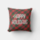 Happy Holidays Red and Green Scottish Tartan Plaid Cushion