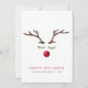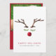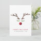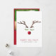 A unique modern Christmas greeting card featuring an abstract watercolor of a reindeer's face made from antlers, green leaves for the eyelashes and a red berry for the nose. "Happy Holidays" is written in red with your family name and year underneath in simple typography. On the back, upload a photo, personalise your holiday message and add your first names in white text on a red background.