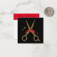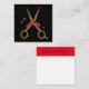 These golden glitter scissors makes a perfect card for your business. Text easy to adjust! A classic black and golden colour combination. Elegant hair stylist template with a red ribbon.