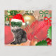 Happy holidays Santa Claus cat, a posing cat on a ornament background and bows