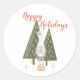 Happy Holidays Scandinavian Gnome Trees Classic Round Sticker