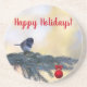 "Happy Holidays!" Snowbird in an Evergreen on a Coaster