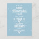 Its the most wonderful time of the year-Happy Holidays. Pastel blue and white christmas text design
