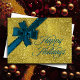 Happy Holidays Sparkly Gold w Teal Glittery Bow Holiday Card