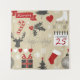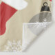Seamless Happy Holidays design Christmas symbols - snowflakes, deer, calendar, Christmas tree, Christmas gift, skate, hearts, Christmas ornament, Christmas stocking, ribbon - decoration on grey background
