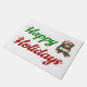 Doormat with happy holidays in 3D green and red text and a teddy bear with a gift. Available in several sizes.