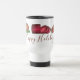Travel mug design features an original marker illustration of a turkey, cranberry sauce, and pumpkin pie, with HAPPY HOLIDAYS in a fun font. Great for Thanksgiving or as a Christmas stocking stuffer.