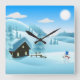 "HAPPY HOLIDAYS" WINTER LANDSCAPE SQUARE WALL CLOCK