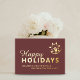 Happy holidays with logo business taupe gold foil holiday card
