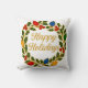 Happy Holidays Wreath Christmas Lights and Holly Cushion