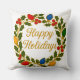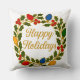 Happy Holidays Wreath Christmas Lights and Holly Cushion