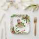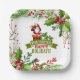 This design features watercolor Christmas foliage, berries, a cute illustration of Santa Claus climbing down chimney and the words “Merry Christmas! Happy Holidays!” will add festive way to serve meals at your Christmas party.